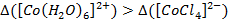 L’oxygène attirant plus les électrons à lui, la liaison en sera d’autant plus ionique. De plus, dans le complexe tétraédrique, les ligands se trouvent plus proche du métal central. Il en résulte alors une interaction plus forte entre l’atome de chlore et l’atome de cobalt et donc une plus forte covalence.